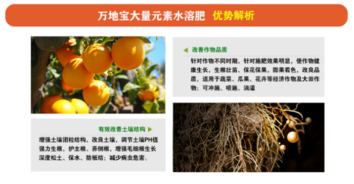 萬(wàn)地寶大量元素水溶肥料采用磷酸二氫鉀或礦源黃腐酸鉀為原料,特別添加海藻酸與螯合微量元素,根據(jù)作物生長(zhǎng)階段所需營(yíng)養(yǎng)設(shè)計(jì)配方,適合多種施肥方式,省時(shí)省力。